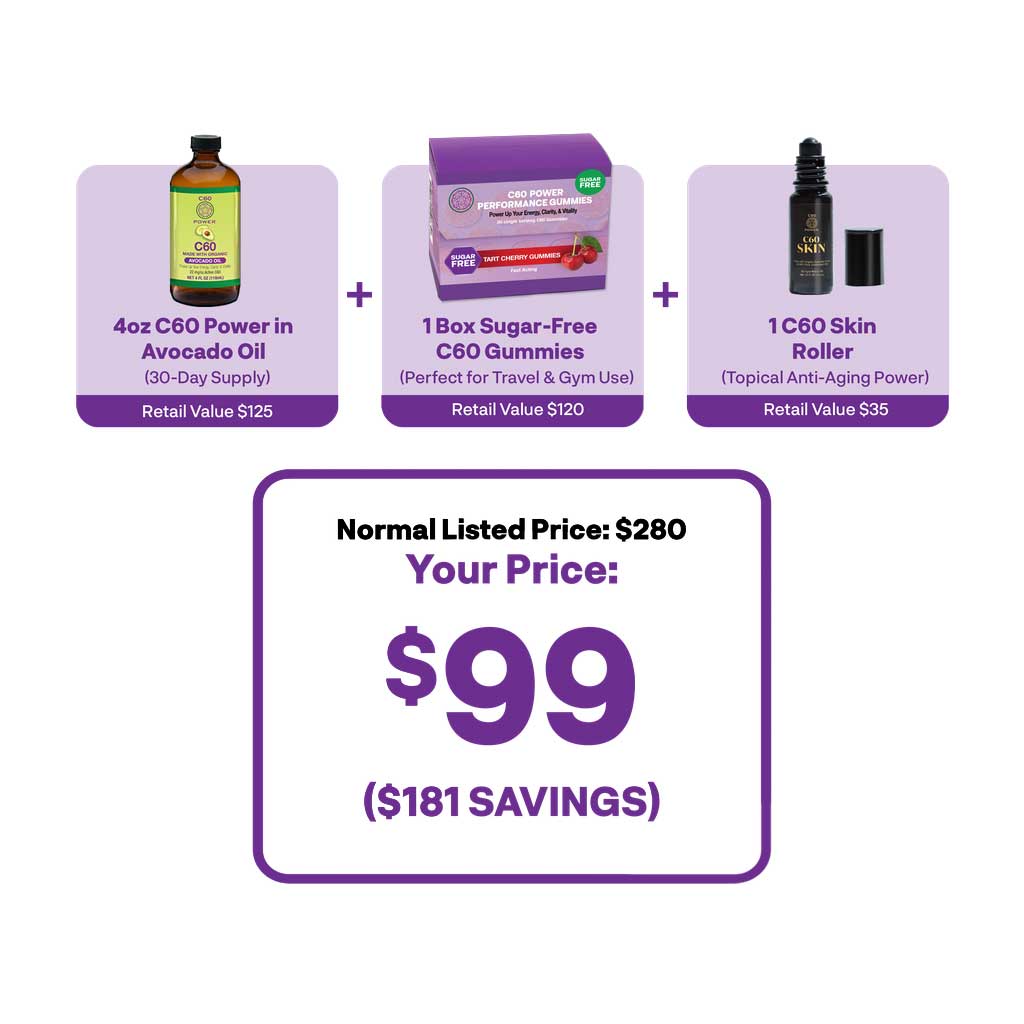 • 4oz C60 Power in Avocado Oil (30-Day Supply) – Daily nourishment to support energy, mental clarity, and stamina.