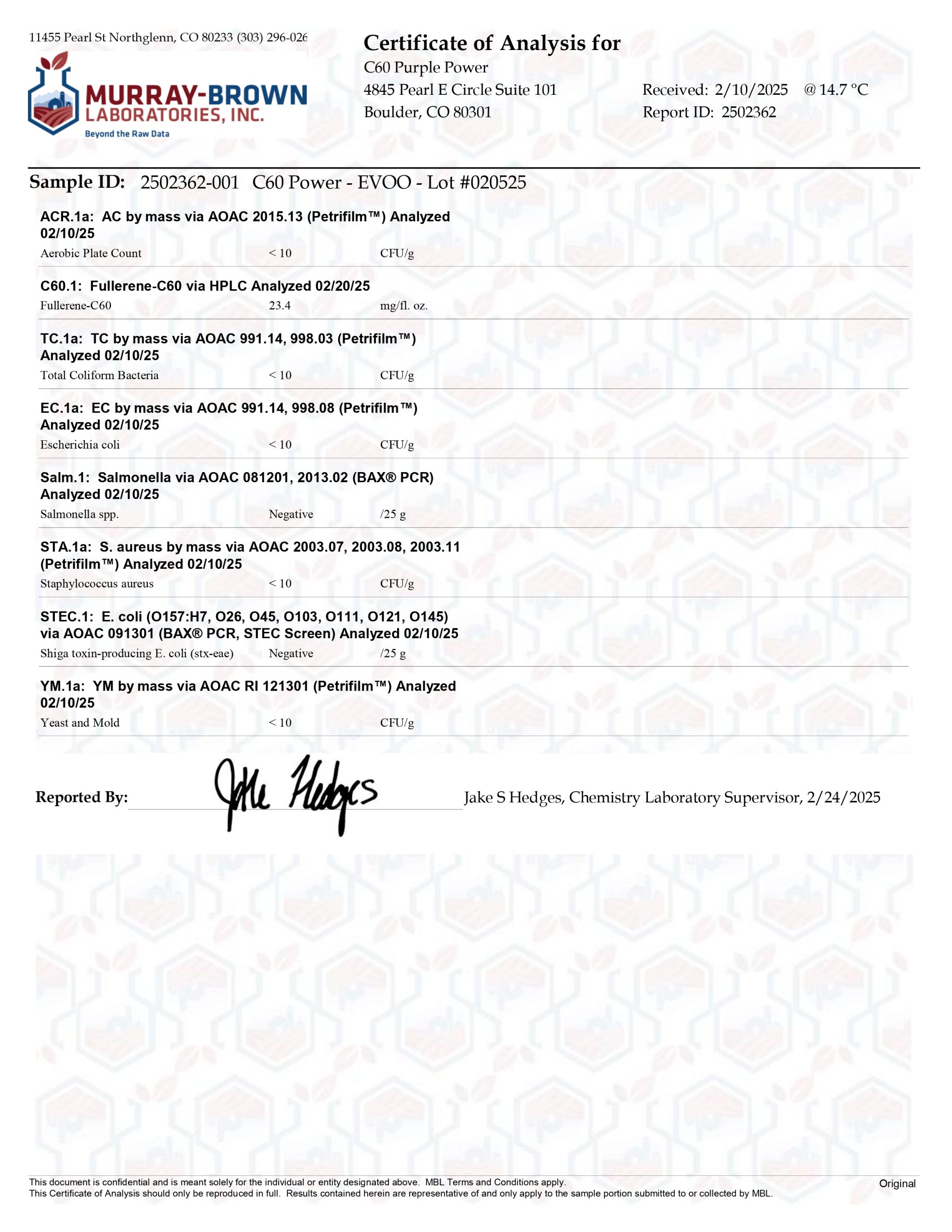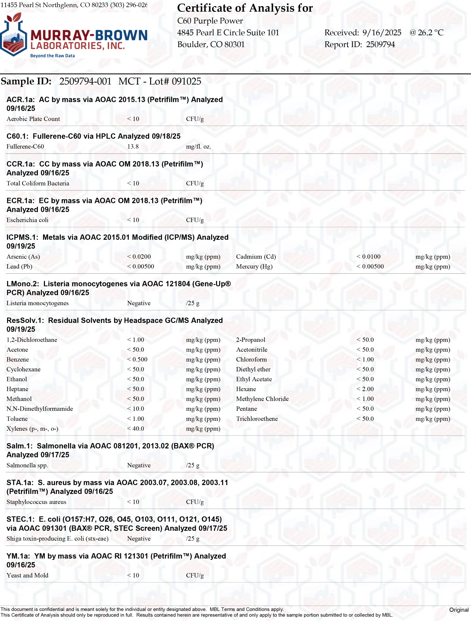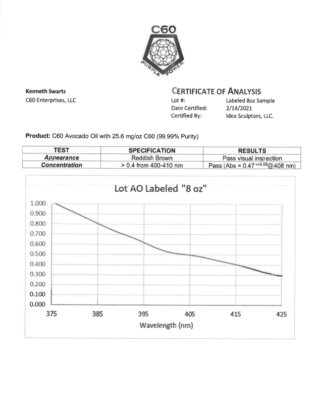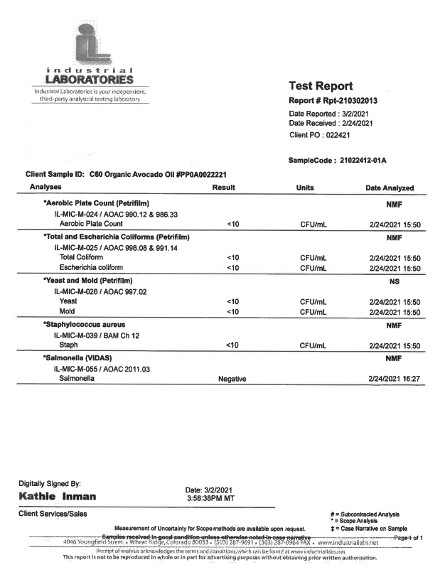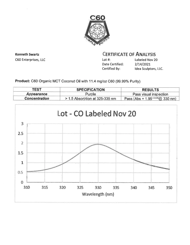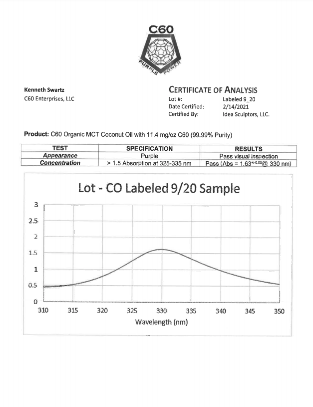 Here at C60 Power, quality and safety are something we really care about. Our products are tested by a third-party lab, with certificates of analysis (COA) included in each order.