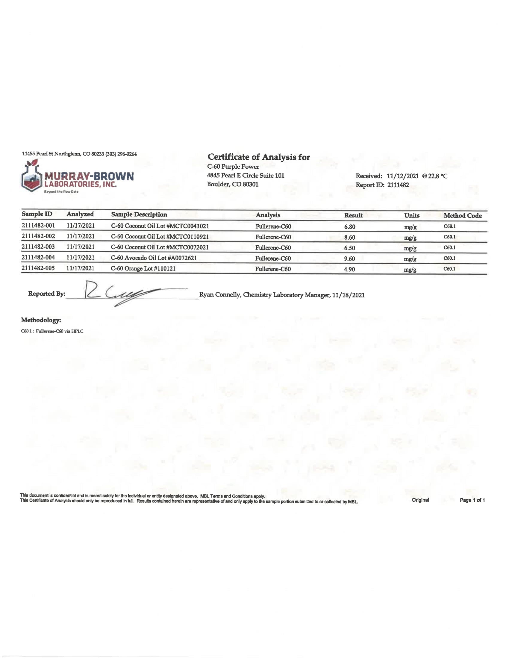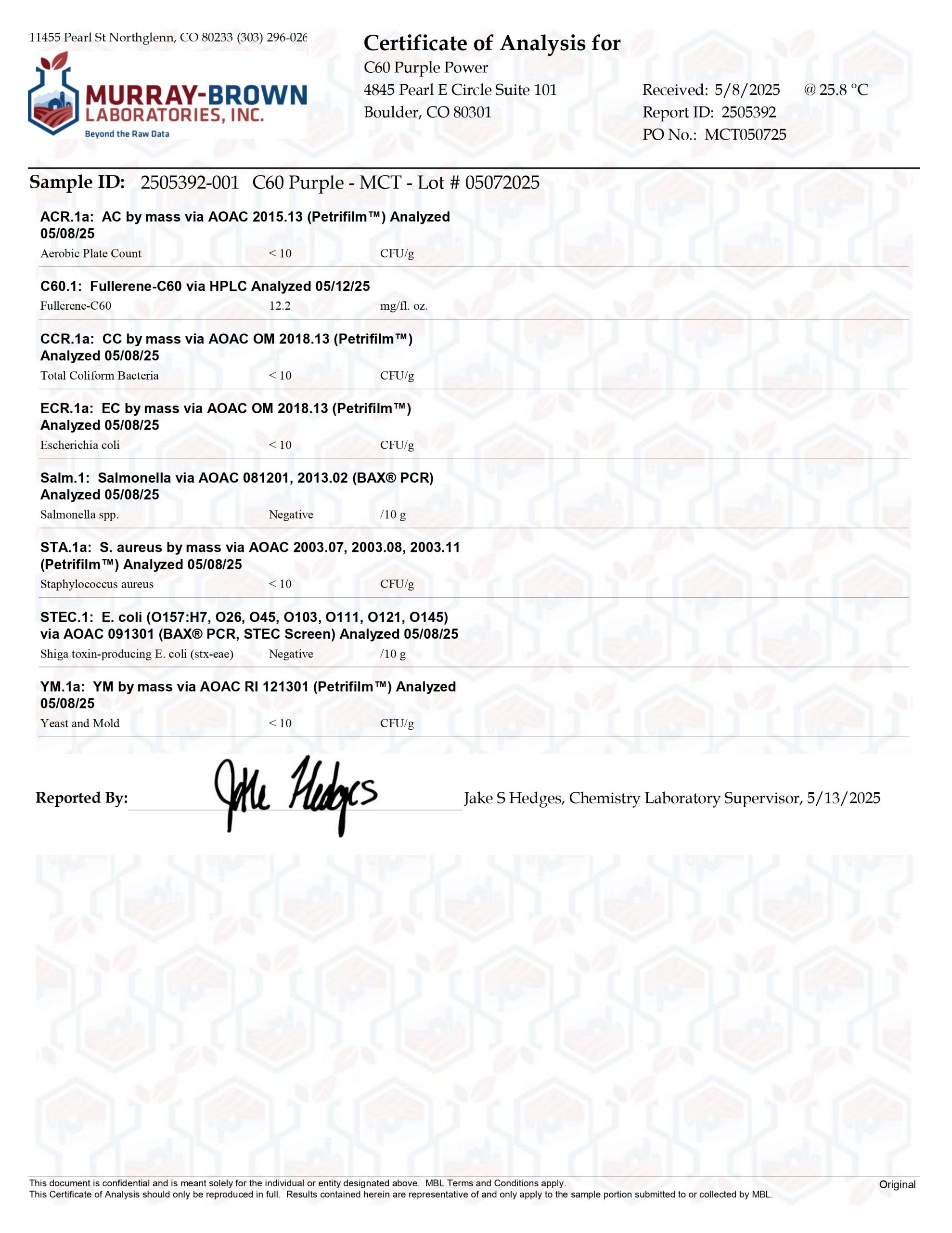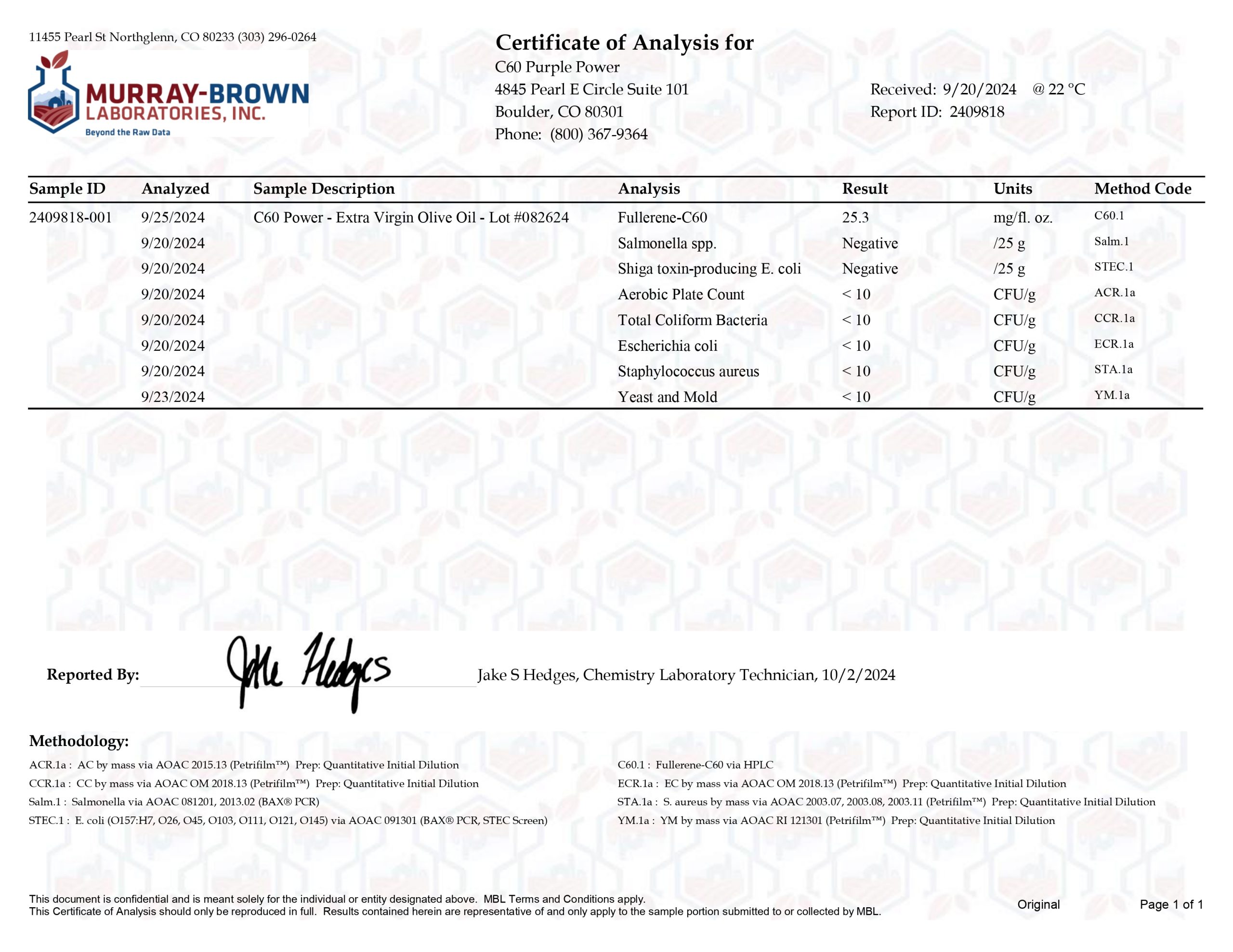 Here at C60 Power, quality and safety are something we really care about. Our products are tested by a third-party lab, with certificates of analysis (COA) included in each order.