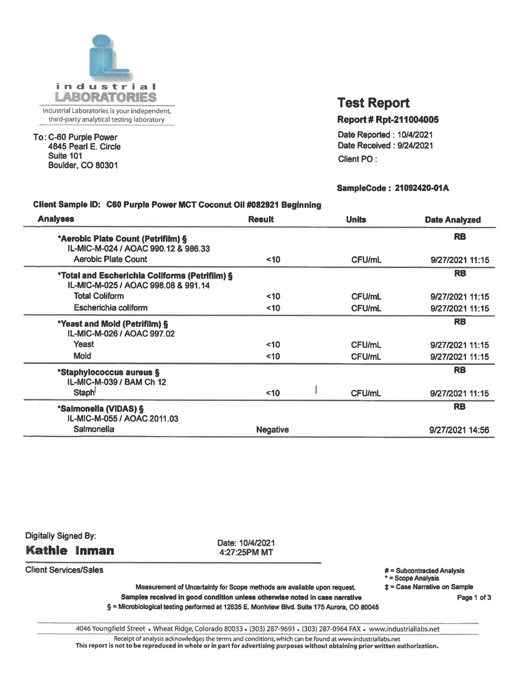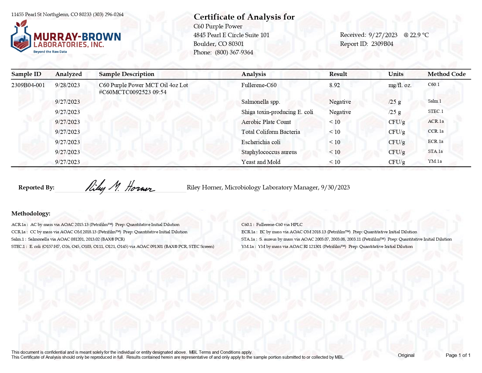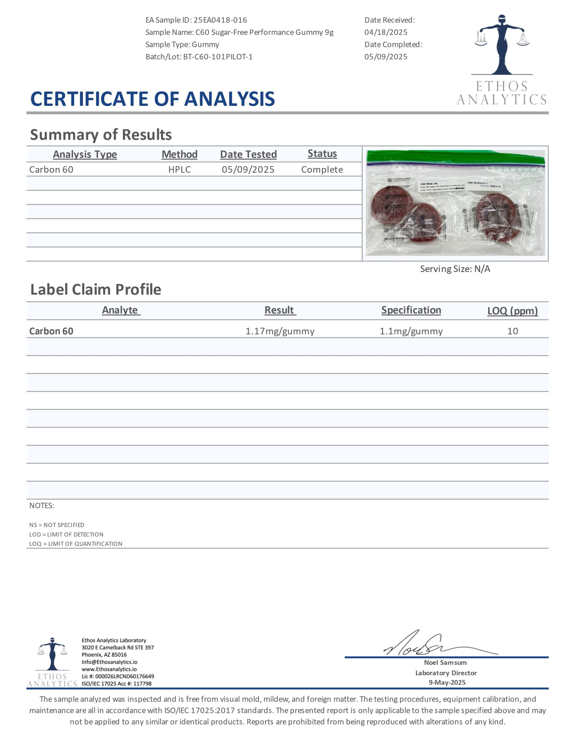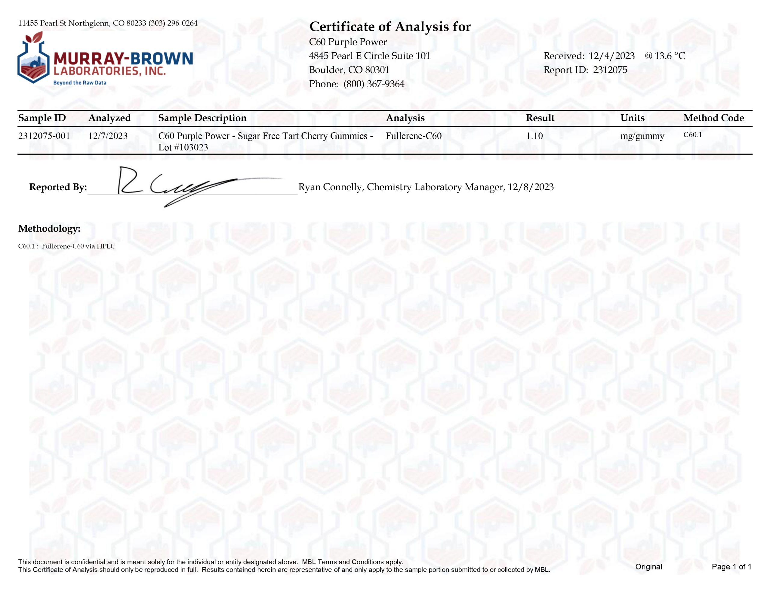 Here at C60 Power, quality and safety are something we really care about. Our products are tested by a third-party lab, with certificates of analysis (COA) included in each order.