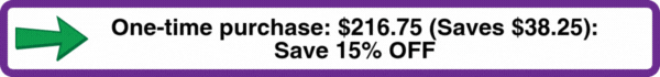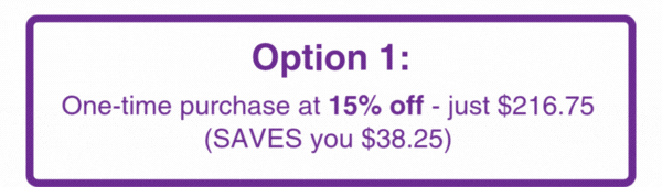 Option 1: One-time purchase at 15% off – just $216.75 (SAVES you $38.25)