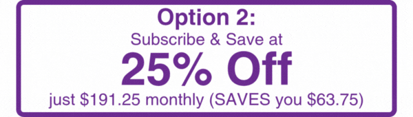 Option 2: Subscribe & Save at 25% off – just $191.25 monthly (SAVES you $63.75)