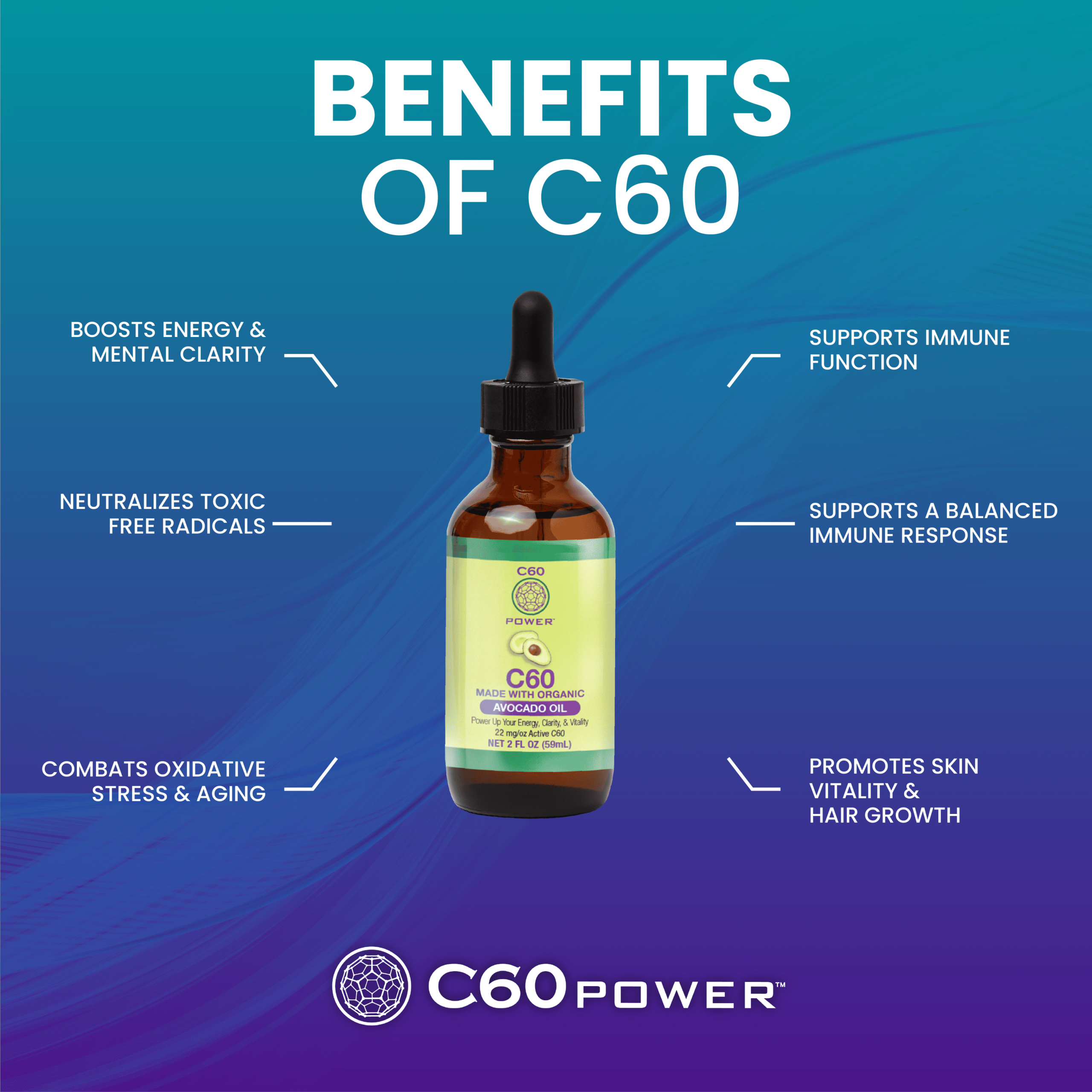 C60 is thought to be the most powerful antioxidant yet known. C60 neutralizes the free radicals that cause oxidative stress. By scavenging free radicals, C60 allows the body to heal naturally.*