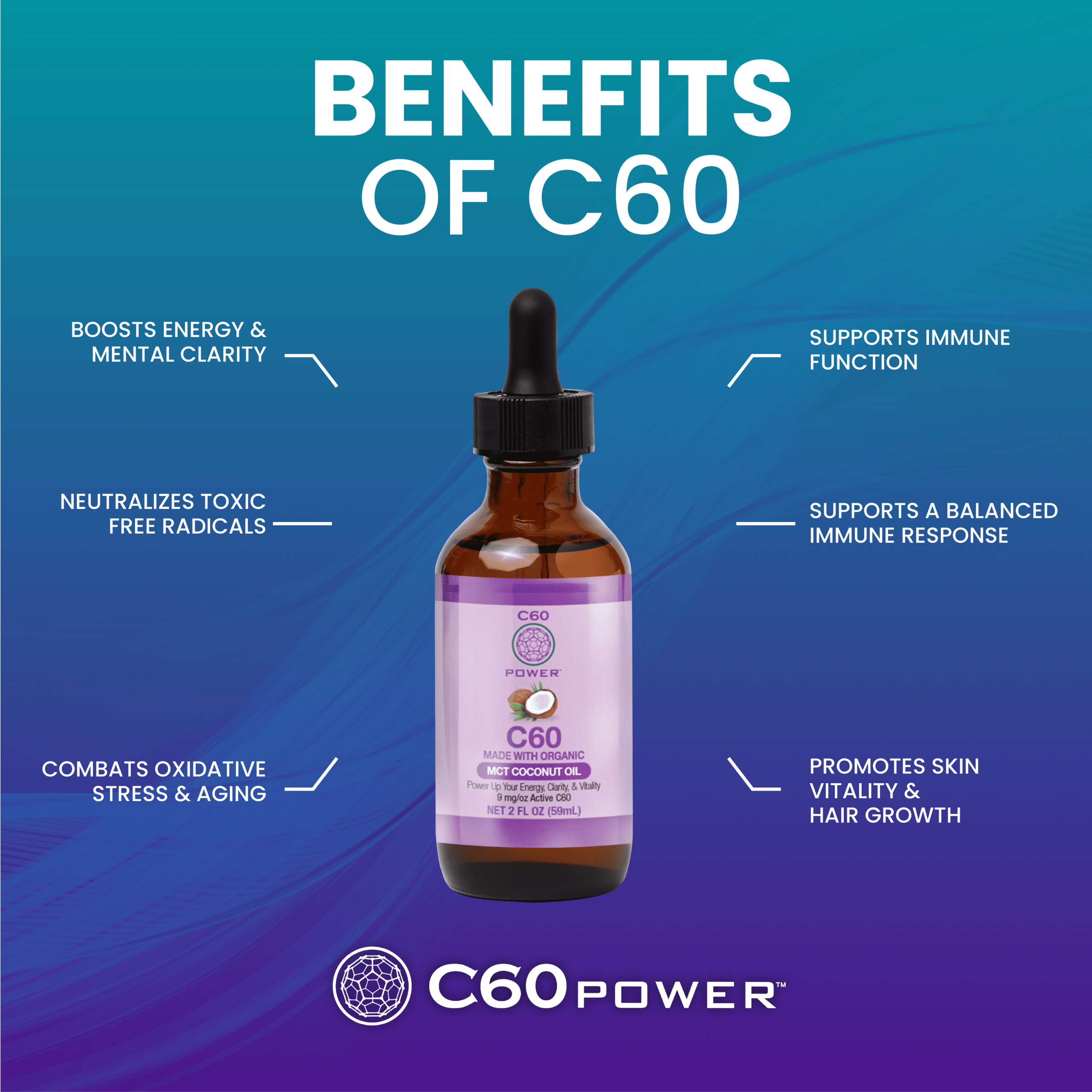 Strengthen your body's natural defenses by neutralizing harmful free radicals. C60 may promote a balanced immune response.