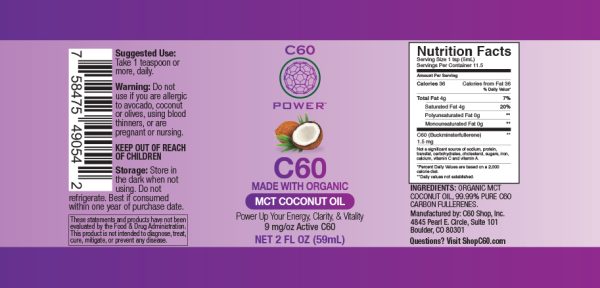 C60 Power’s C60 in Organic MCT Coconut Oil is made with 100% certified organic oils and 99.99% pure sublimated C60 (never exposed to solvents) with maximum concentration. C60 Power is professionally formulated and tested for purity, quality, concentration, and maximum bioavailability and made in the USA.